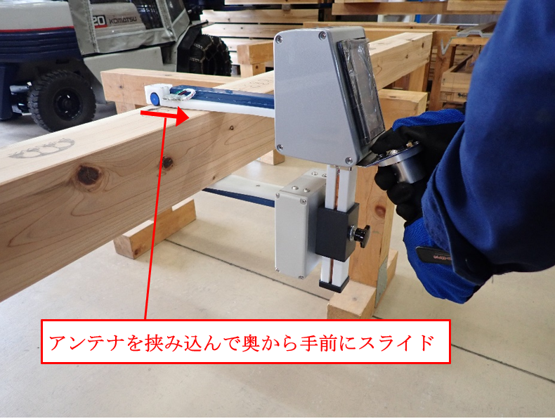 製材JASの格付け検査のうち含水率の検査は、破壊試験(全乾法)により実施されているが、公的機関等の認定を受けた既存の木材水分計(含水率計)を用いることで、検査機関が試験片を持ち帰ることなく、その場で結果を出すことで、含水率検査を迅速かつ木材製品を破壊することなく行うことが可能となる。令和3年度補正予算事業で実施した同事業において、マイクロ波透過型含水率計の検量線を適切に作成し、含水率範囲を20%以下に限定すれば、ある程度密度にバラツキがあっても105mmの正角乾燥材の含水率を高い精度で測定可能と確認できた。