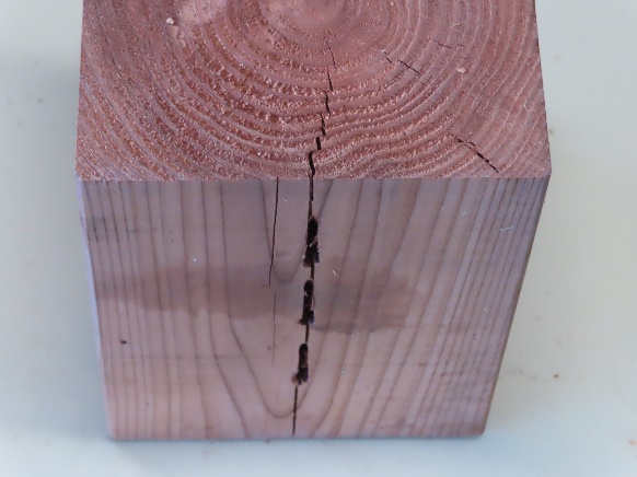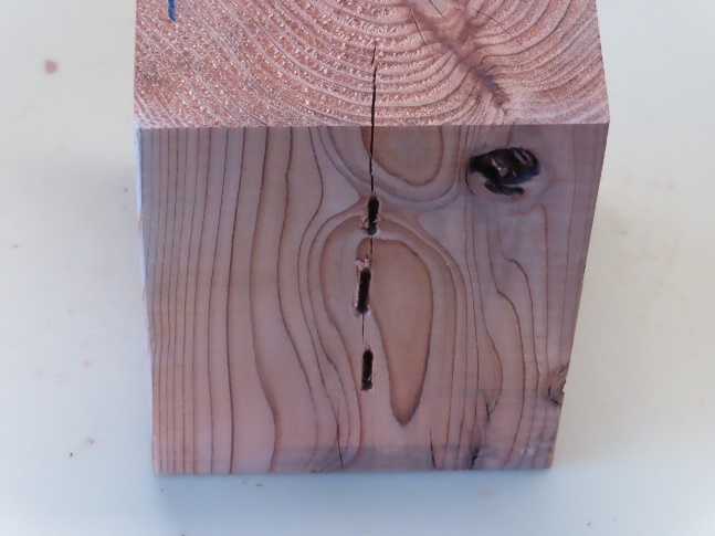 ![]() 図20 J24 J24(未調整)S215 くぎによる木材のめり込み、割れ |